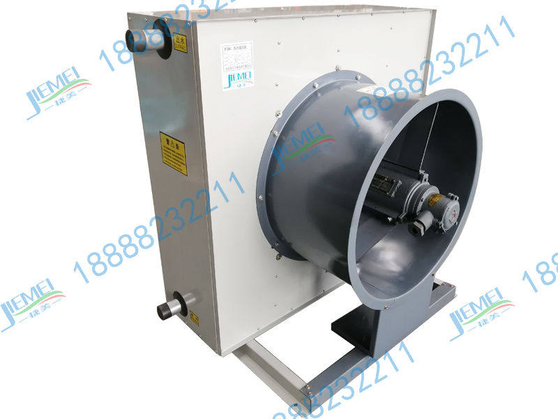 GS热水暖风机是以高温热水(80℃以上)为热媒的采暖设备。该型暖风机主要由外转子轴流风机、热交换器、格栅风口、壳体等组成,散热器均为铜管串铝翅片,热媒由下进上出,热量经管壁传导绕在钢管外表面的翅片上与空气热交换,叶轮由电动机带动,迫使空气流经排管外翅片,由此获得热量,从而使空气温度升高。